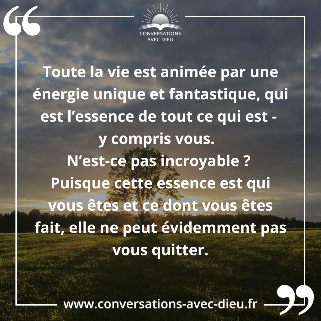 que toute la vie est animée par une énergie unique et fantastique, qui est l’essence de tout ce qui est – y compris vous.