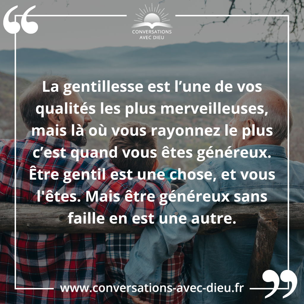 que la gentillesse est l’une de vos qualités les plus merveilleuses, mais là où vous rayonnez le plus c’est quand vous êtes généreux.