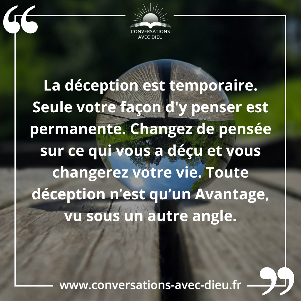 Changez de pensée sur ce qui vous a déçu et vous changerez votre vie. Toute déception n’est qu’un Avantage, vu sous un autre angle.