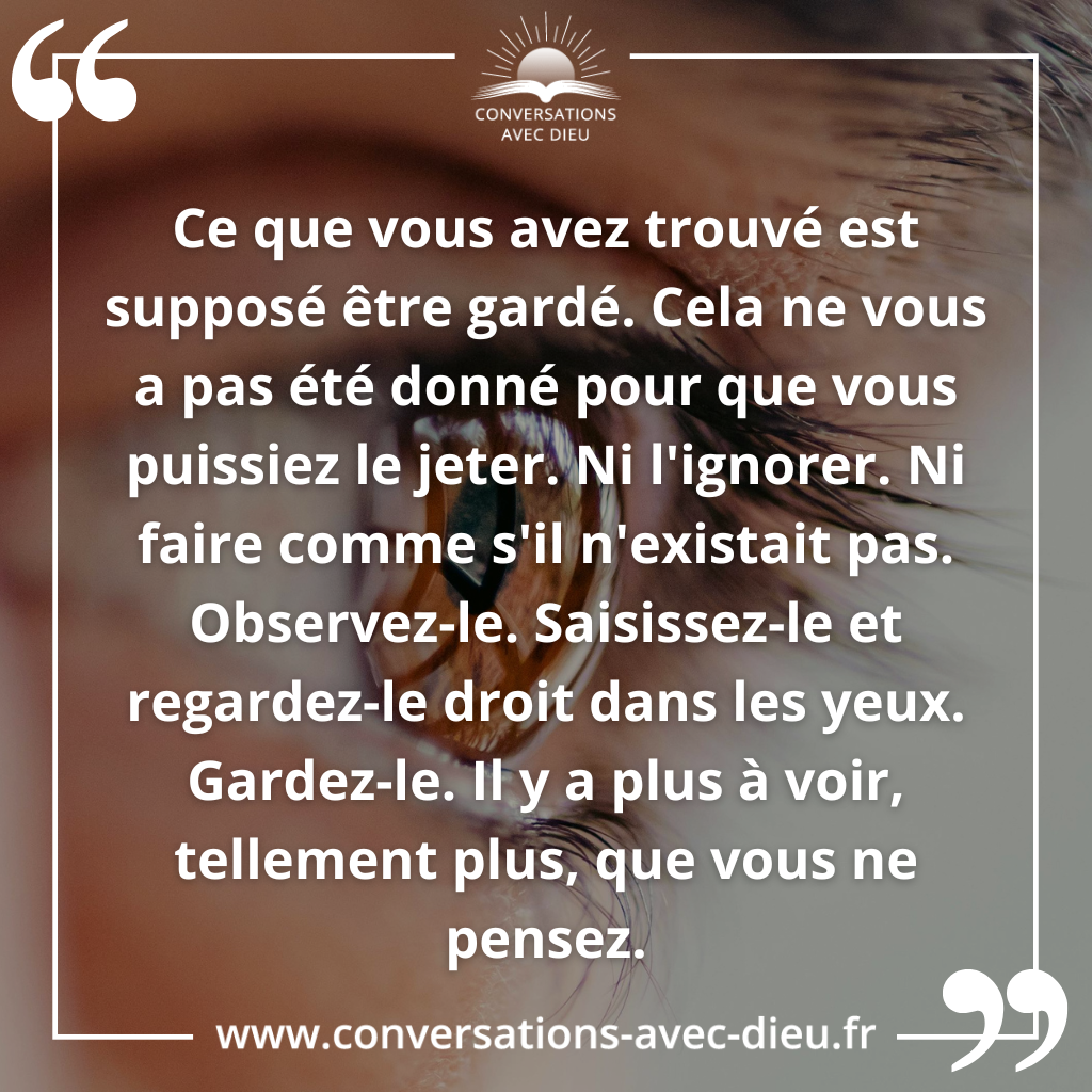 Observez-le. Saisissez-le et regardez-le droit dans les yeux. Gardez-le. Il y a plus à voir, tellement plus, que vous ne pensez.